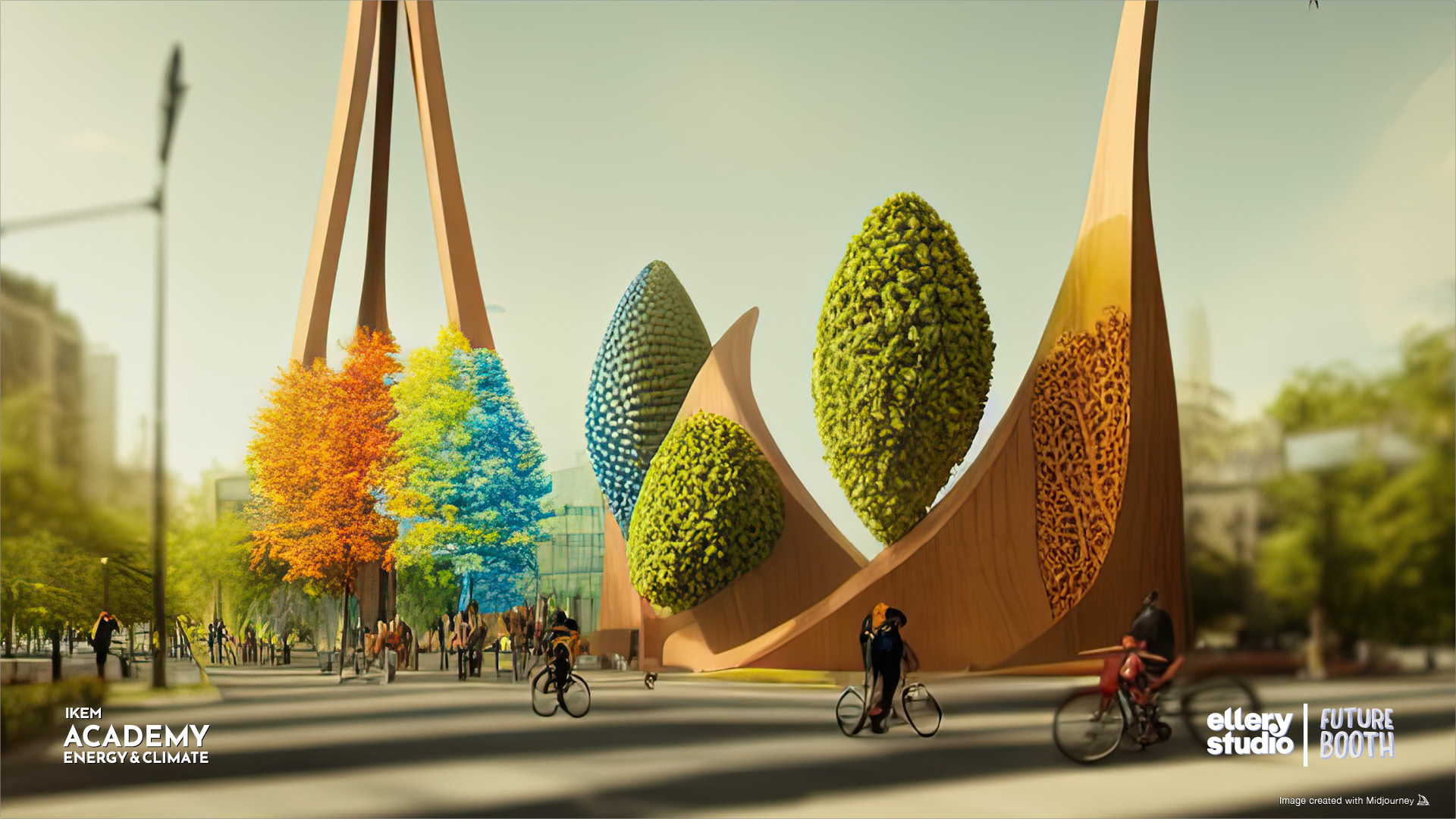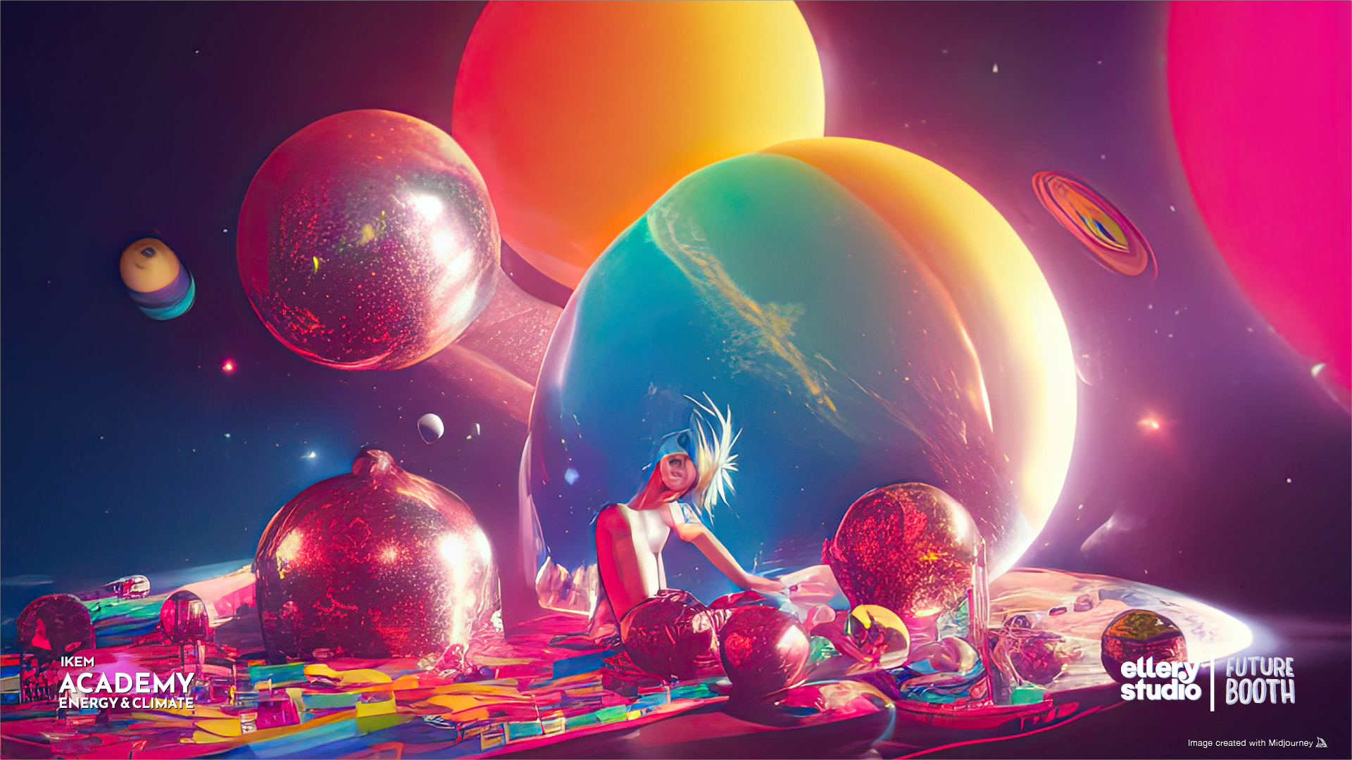 Ein weiteres Highlight der IKEM-Jahrestagung war das Future Booth von Ellery Studio, bei dem die Teilnehmer: innen ihre Visionen einer wünschenswerten Zukunft mit Hilfe künstlicher Intelligenz visualisieren konnten. Eine Auswahl der Ergebnisse sehen Sie in der folgenden Galerie.