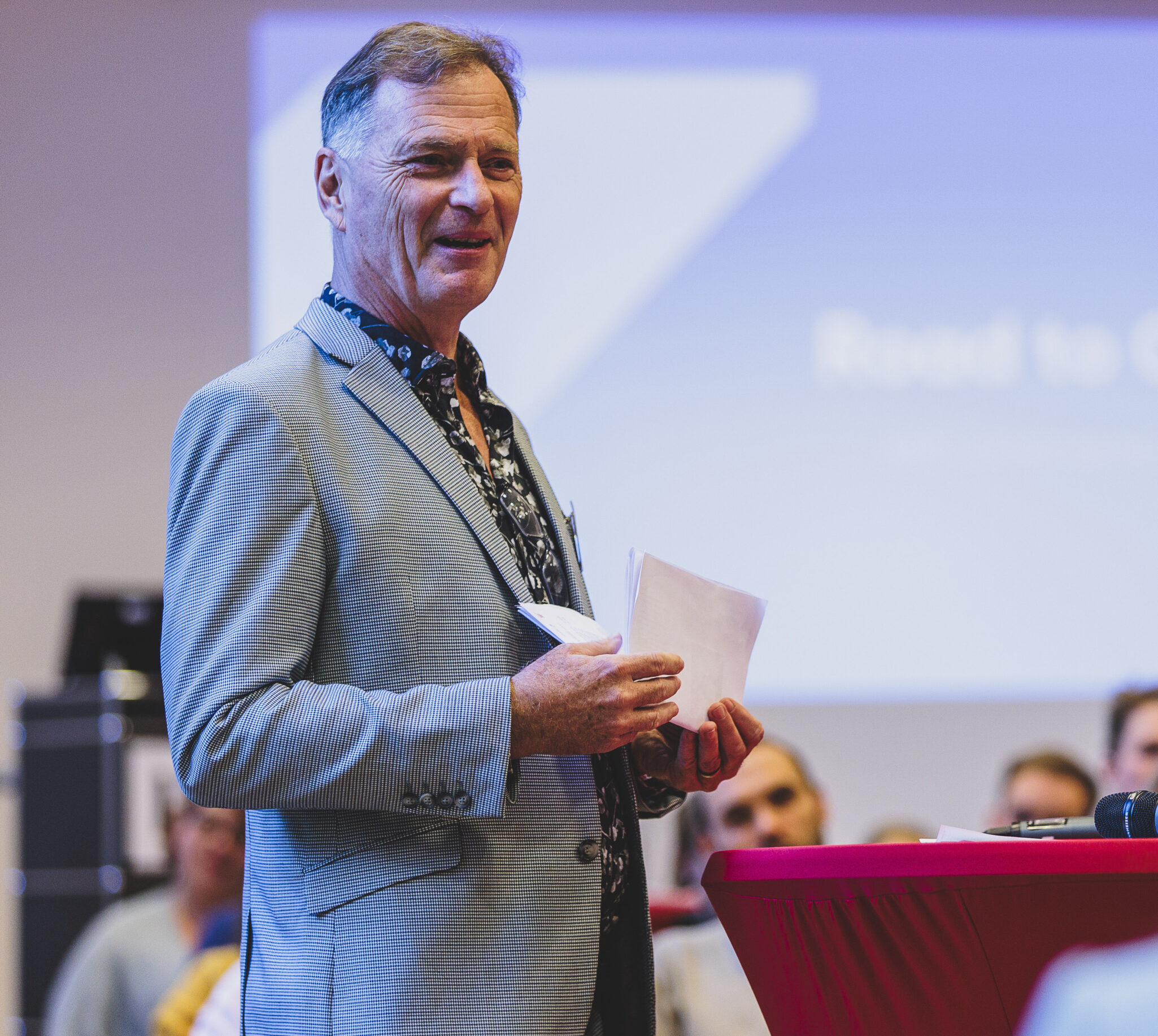 Bei der Veranstaltung stellten Expert:innen aus verschiedenen Disziplinen ihre Klimaschutzstrategien für den Straßengüterverkehr vor. Die Vorträge und anschließenden Diskussionen verdeutlichten die Herausforderungen, vor denen die Branche aktuell steht, sowie den dringenden Bedarf nach klaren Vorgaben und Unterstützung von der Politik.