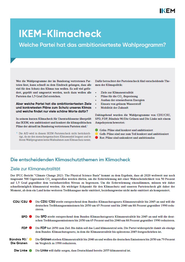 IKEM-Klimacheck: Welche Partei hat das ambitionierteste Wahlprogramm?