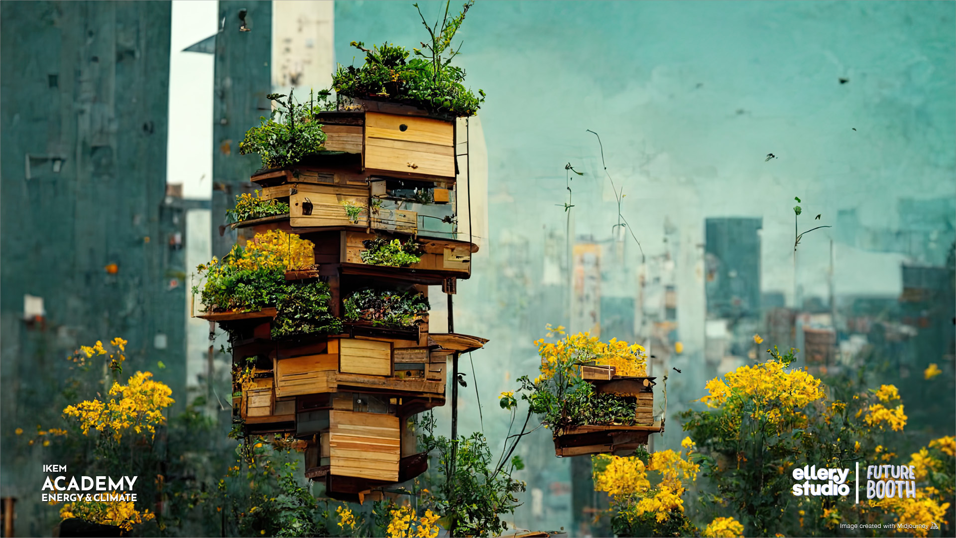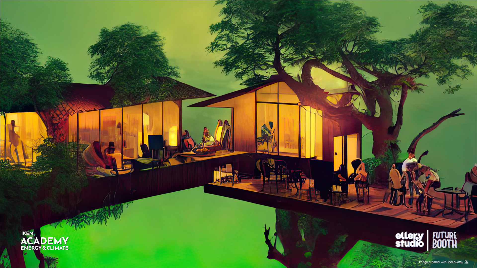 Ein weiteres Highlight der IKEM-Jahrestagung war das Future Booth von Ellery Studio, bei dem die Teilnehmer: innen ihre Visionen einer wünschenswerten Zukunft mit Hilfe künstlicher Intelligenz visualisieren konnten. Eine Auswahl der Ergebnisse sehen Sie in der folgenden Galerie.