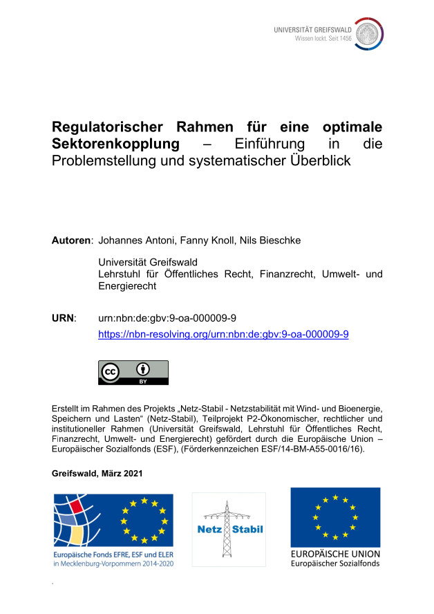 Regulatorischer Rahmen für eine optimale Sektorenkopplung – Einführung in die Problemstellung und systematischer Überblick