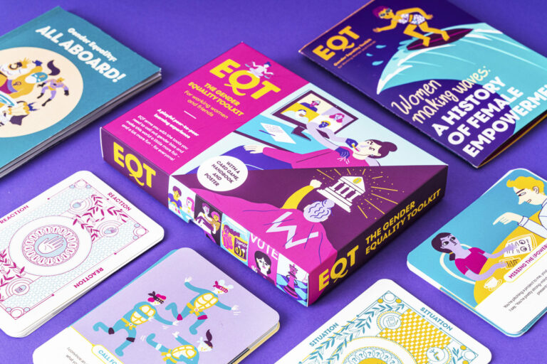 The card game starts with 50 cards that illustrate a range of ways in which sexism can manifest at work. A corresponding set of 50 response cards suggest possible reactions. The game allows players to learn about structural challenges in an engaging, even fun, way thanks to the comic-style visuals and colourful design.