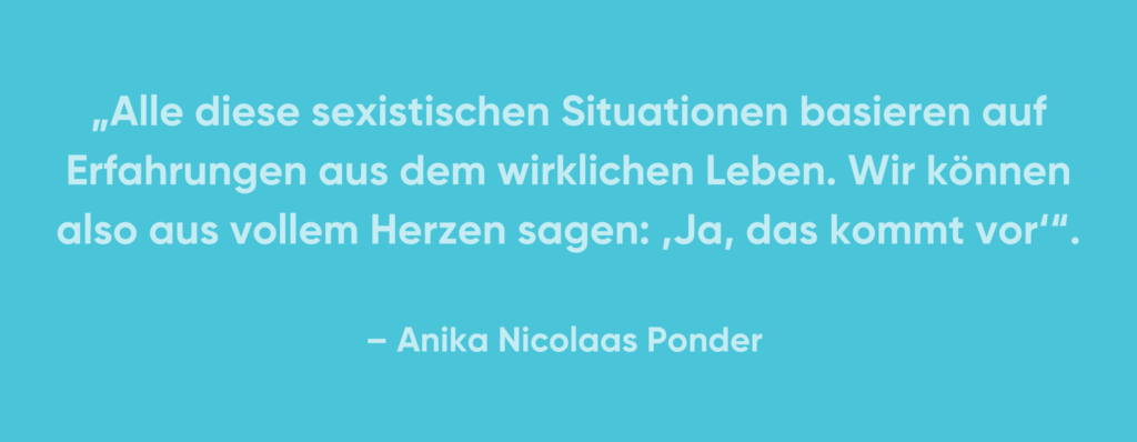„In den Interviews kam häufig zur Sprache, dass die Frauen schockiert waren, wenn diese sexistischen Situationen am Arbeitsplatz auftraten, nicht wussten, wie sie reagieren sollten und sich später schuldig fühlten, weil sie nichts dagegen unternommen hatten“, so Stabon.