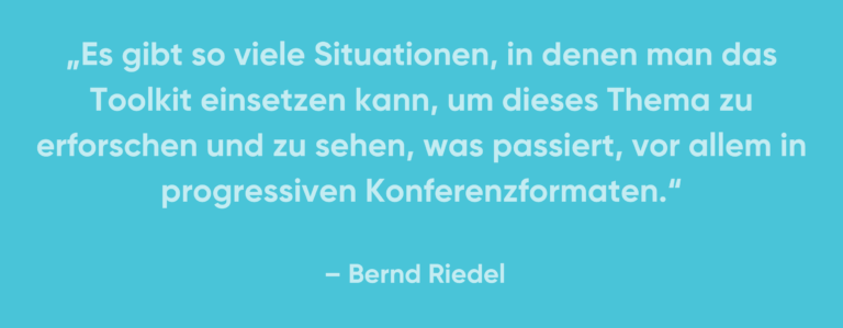 Riedel sieht viele Möglichkeiten für das Toolkit, den Wandel voranzutreiben, von Schulungen am Arbeitsplatz bis hin zu zwanglosen Treffen. „Es gibt so viele Situationen, in denen man das Toolkit einsetzen kann, um dieses Thema zu erforschen und zu sehen, was passiert“, sagt er. „Wir hatten bereits eine Reihe von Veranstaltungen, bei denen die Leute wirklich interessiert waren, es auszuprobieren, vor allem in progressiven Konferenzformaten.“