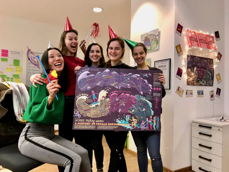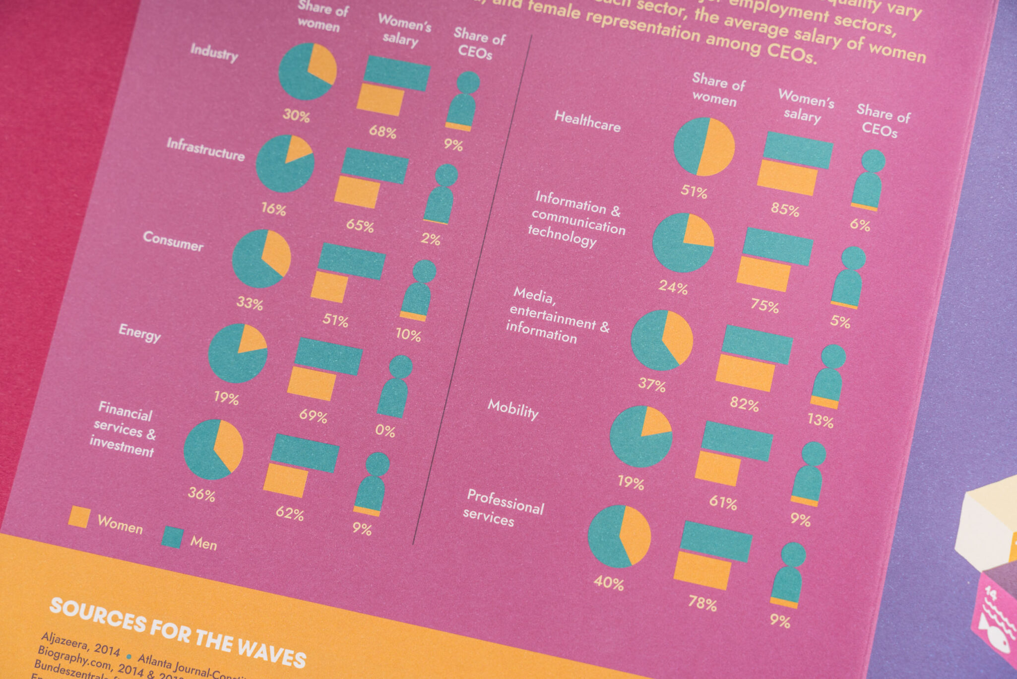 Die Arbeit mit dem Titel „Women making waves: a brief history of female empowerment“ (Frauen, die Wellen schlagen: eine kurze Geschichte der weiblichen Selbstbestimmung) gewann bei den Malofiej International Infographics Awards 2018 den Equality and Woman’s Promotion Award in der Kategorie Print.