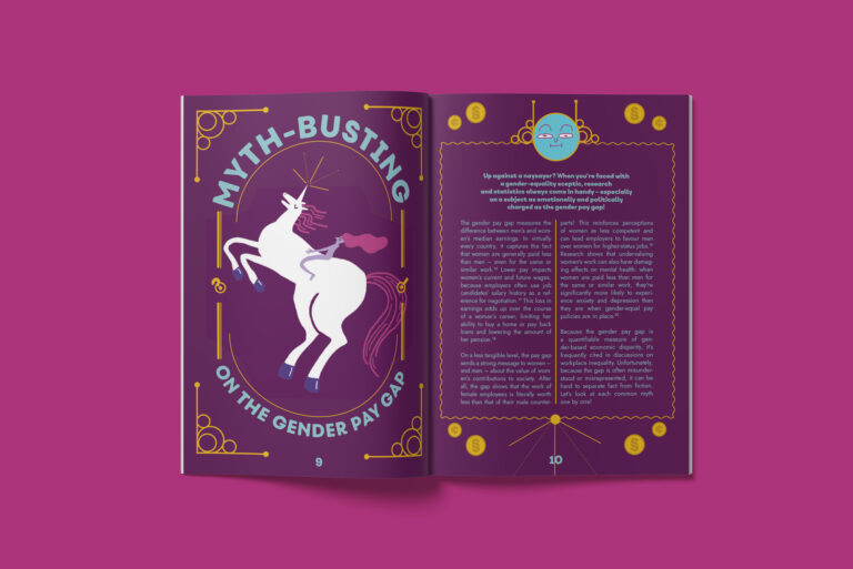 Ein Kapitel räumt beispielsweise mit weit verbreiteten Mythen über das geschlechtsspezifische Lohngefälle auf, von „Es gibt kein geschlechtsspezifisches Lohngefälle“ bis hin zu „Frauen verdienen weniger, weil Männer besser darin sind, höhere Gehälter auszuhandeln“. Der Titel des Handbuchs, Gleichstellung der Geschlechter: alle an Bord! verweist auf das Ziel – Frauen und ihre Verbündeten zu inspirieren, sich gemeinsam für die Gleichstellung der Geschlechter einzusetzen – und auch auf die Zugfahrt, die das Projekt in Gang gesetzt hat.
