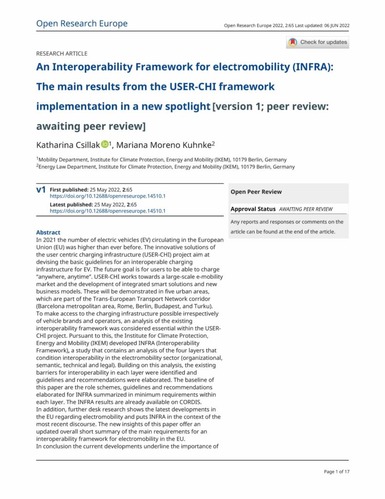 An Interoperability Framework for electromobility (INFRA): The main results from the USER-CHI framework implementation in a new spotlight